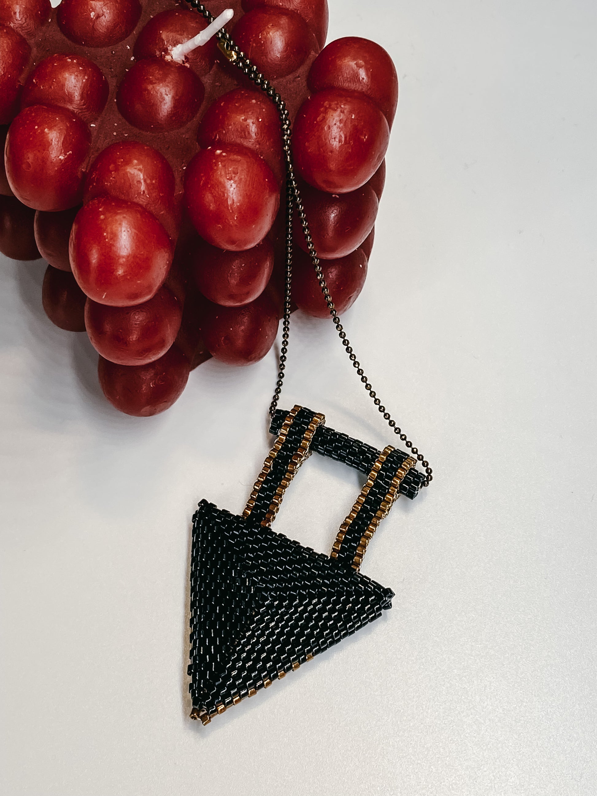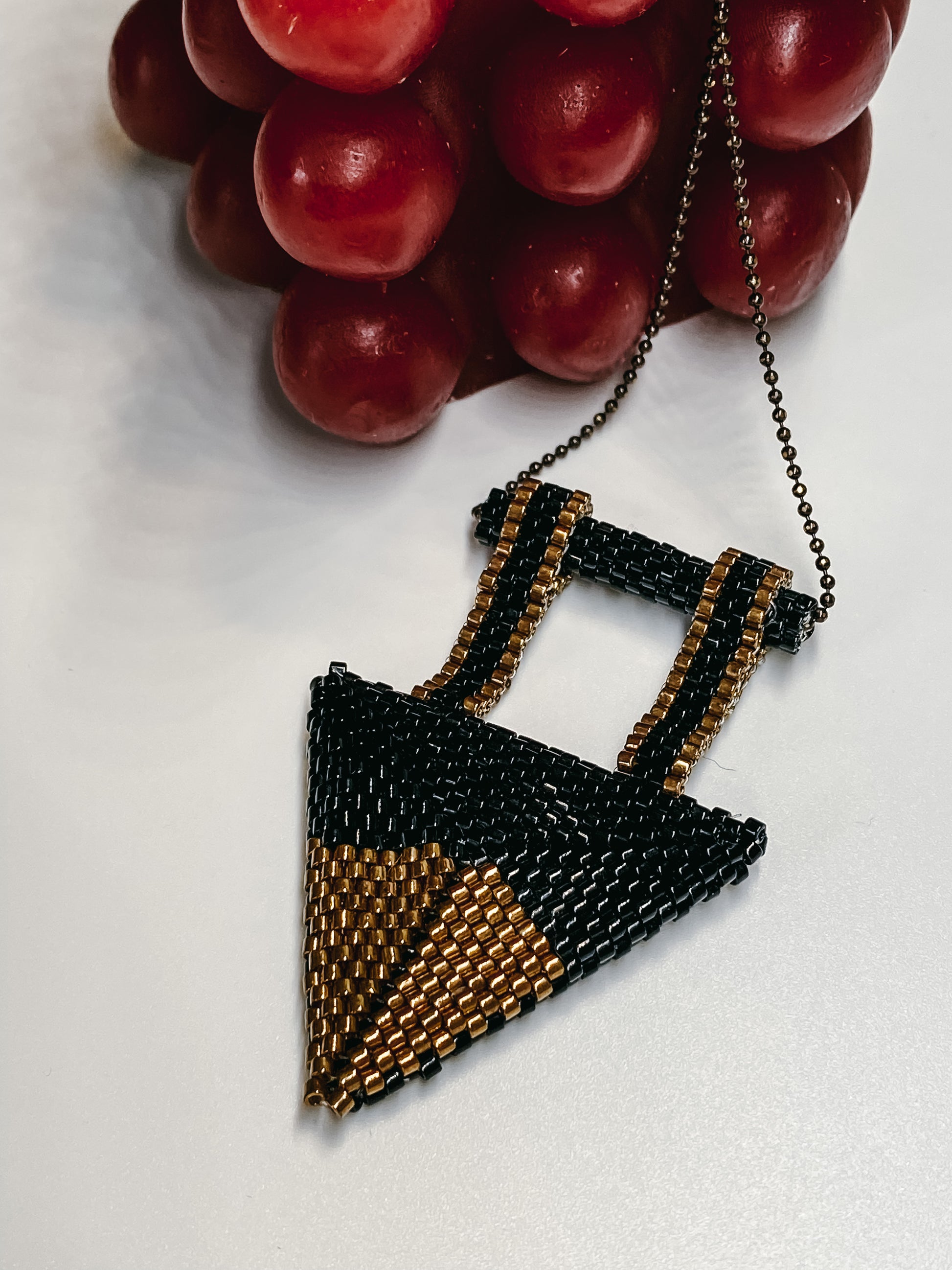 This unique Double Side Triangle Pendant is handmade by a mother's hands, ensuring quality and individuality. Its triangular shape allows for it to be worn on either side, making it versatile and perfect for any outfit. Complete your look with this meaningful and carefully crafted pendant.