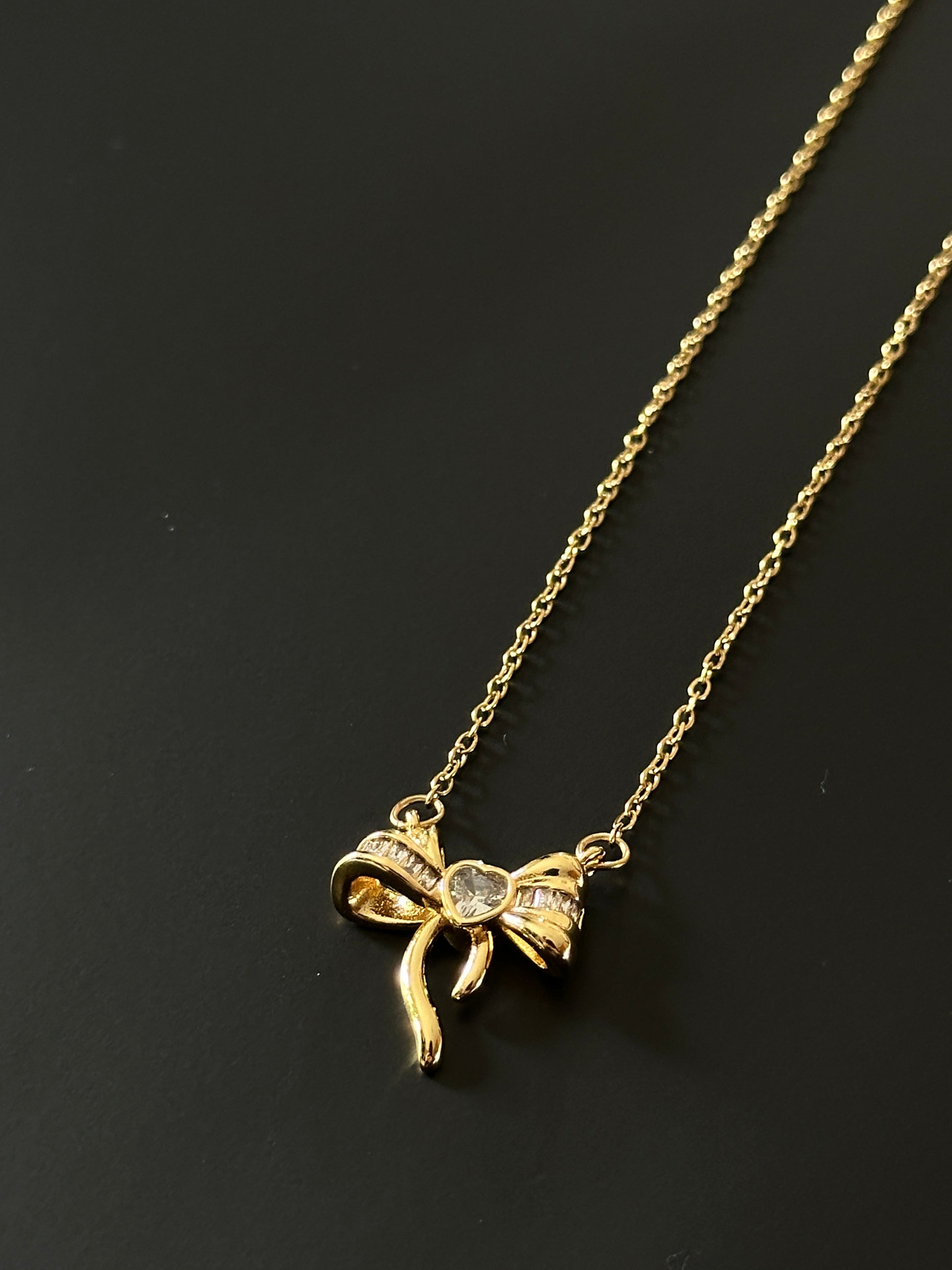 Fall in love with our stainless steel bow necklace, adorned with a romantic heart zircon detail. Perfect for Valentine's Day or any special occasion, this necklace is a symbol of love and elegance. Show your passion and make a statement with our stunning bow necklace!