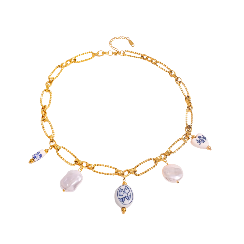 Elevate your style with the Cyclades necklace, a stunning gold piece adorned with delicate white and blue details. Inspired by the serene beauty of the Greek islands, this necklace lets you carry a piece of their spirit wherever you go. Perfect for adding a touch of elegance and a hint of Mediterranean charm to any outfit. Wear the Cyclades and feel connected to the timeless allure of the Aegean Sea.