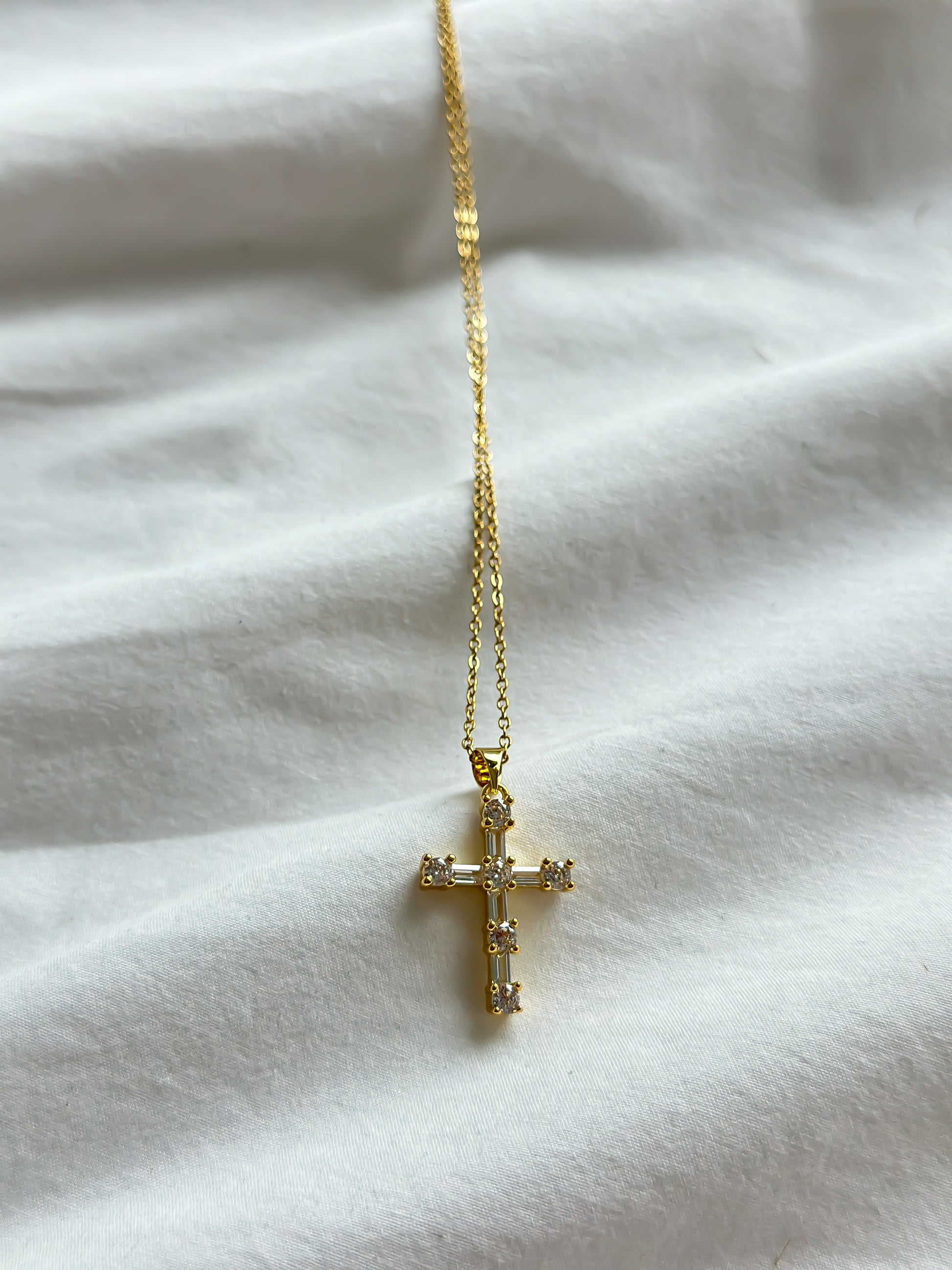 The Faith Necklace is a sparkling symbol of faith. With its Christian cross pendant, it serves as a constant reminder of one's beliefs. Made of high-quality materials, this necklace is an elegant accessory that brings both beauty and spiritual comfort.