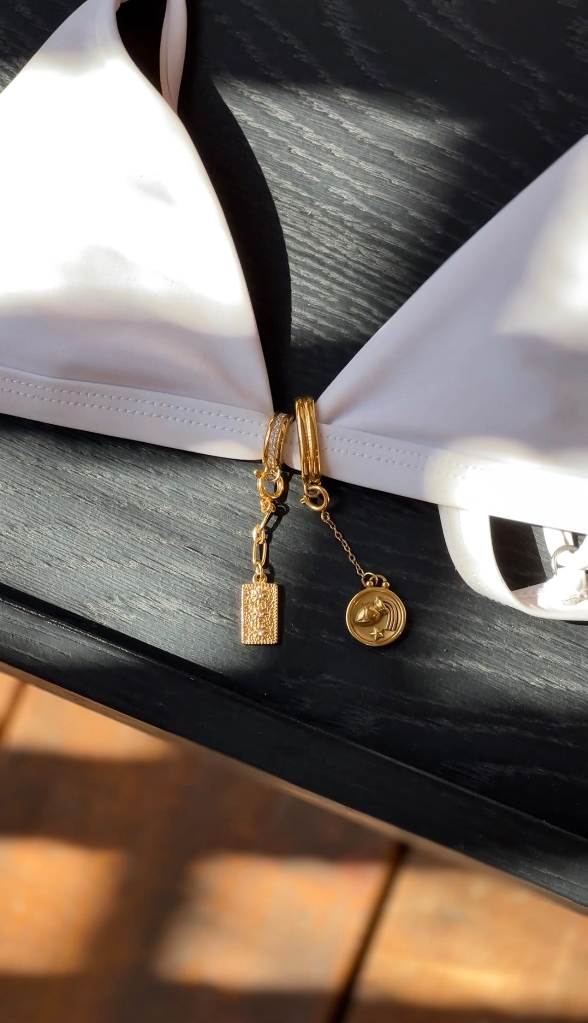 This ID charm for bikini jewelry is the perfect accessory for all your summer adventures. Made with high-quality materials, it adds a touch of elegance to any swimwear. Keep your ID close at hand while looking stylish at the same time. Perfect for the beach, pool, or any outdoor activity.