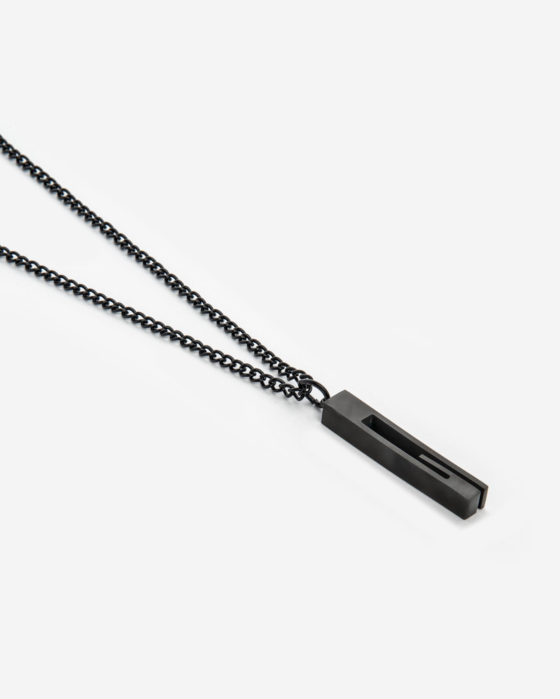 GEOMETRY is a stylish black geometric pendant with timeless appeal. Its modern and minimal design is perfect for any wardrobe, making it an easy addition to complete any look. Its simple and sophisticated design offers a timeless feel and makes a perfect statement piece.