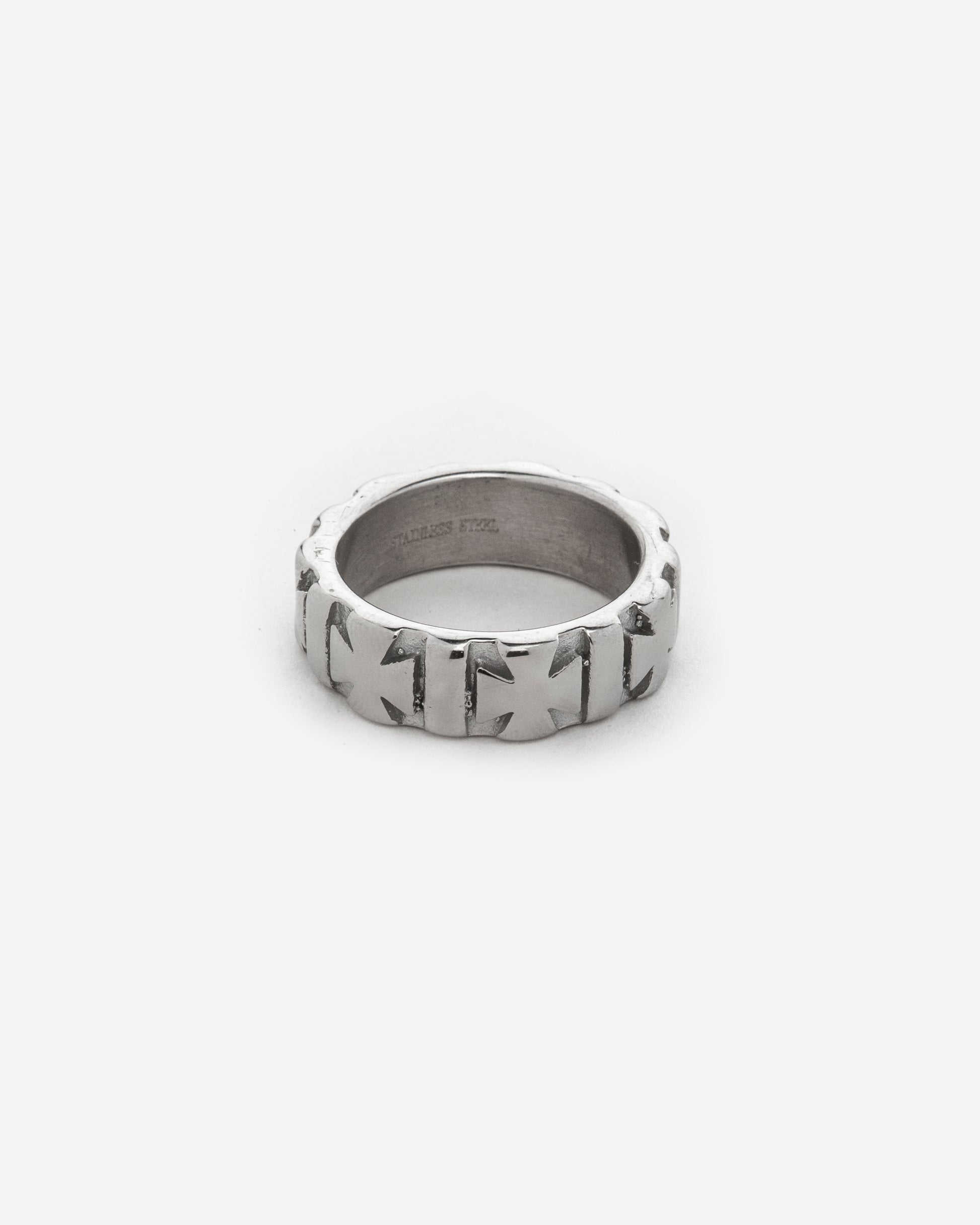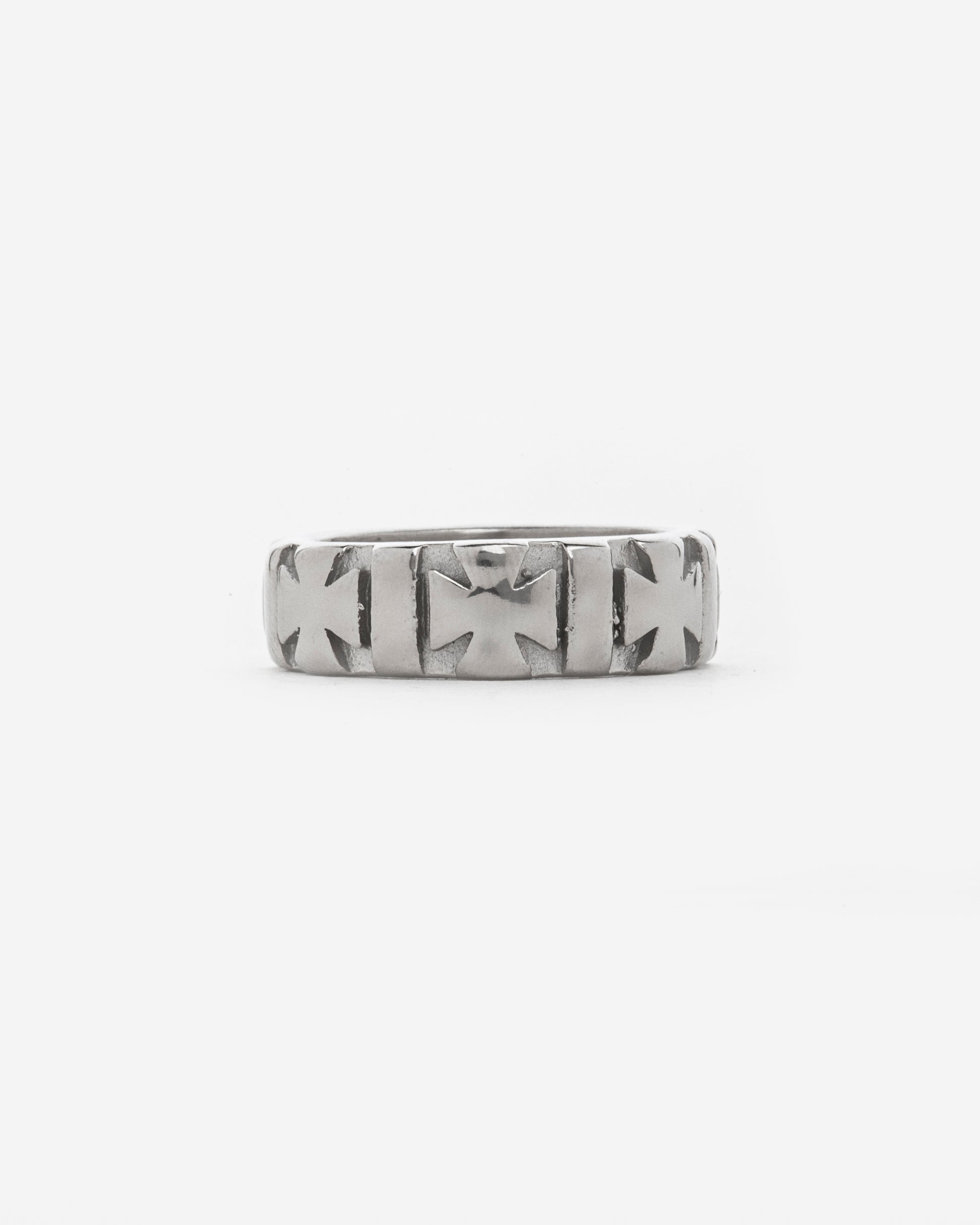 This stainless steel ring features detailed crosses along the band, making it an ideal accessory for adding a touch of faith to any outfit. The careful craftsmanship ensures that the ring is durable and long-lasting.
